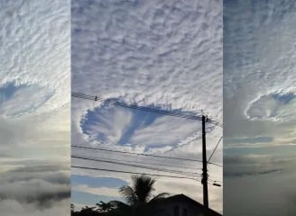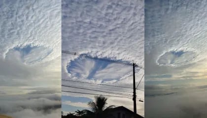 Nesta semana, os olhares dos moradores de Peruíbe, no litoral de São Paulo, se voltaram para o céu, onde um fenômeno raro e fascinante chamou a atenção. Um enorme "buraco" entre as nuvens foi avistado e registrado por diversas pessoas em diferentes pontos da cidade, gerando curiosidade e admiração. Mas o que seria esse evento intrigante?